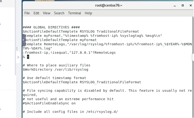 1.3 配置如下参数。其中$template RemoteLogs为将日志文件保存到的目录,此处将日志文件按ip划分文件夹根据日期分割每一天的日志,并将其汇总保存在/var/log/rsyslog下。