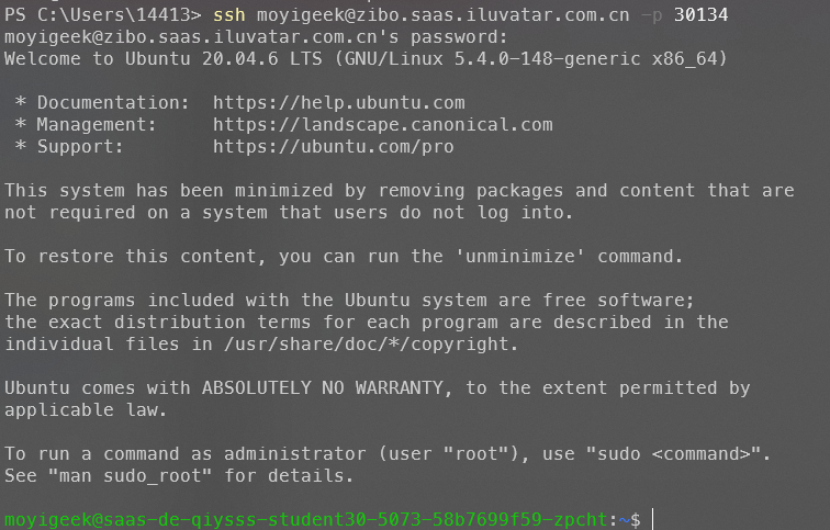 1 | ssh moyigeek@zibo.saas.iluvatar.com.cn -p 30134 |